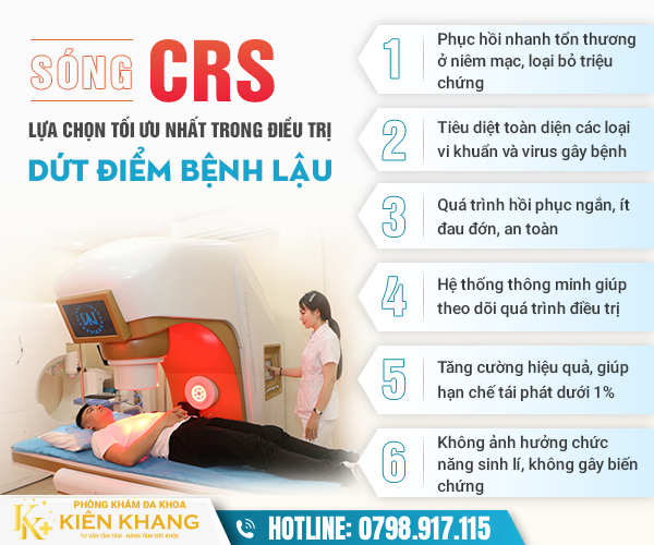 Một trong những yếu tố chính tạo nên sự uy tín và chất lượng của địa chỉ khám bệnh lậu ở Đồng Nai chính là phương pháp điều trị bệnh lậu hiệu quả đang được áp dụng tại đây. Phòng khám sử dụng phương pháp công nghệ sóng cao tần CRS II trong quá trình điều trị bệnh lậu, được các bác sĩ chuyên khoa đánh giá cao nhờ vào những ưu điểm vượt trội.